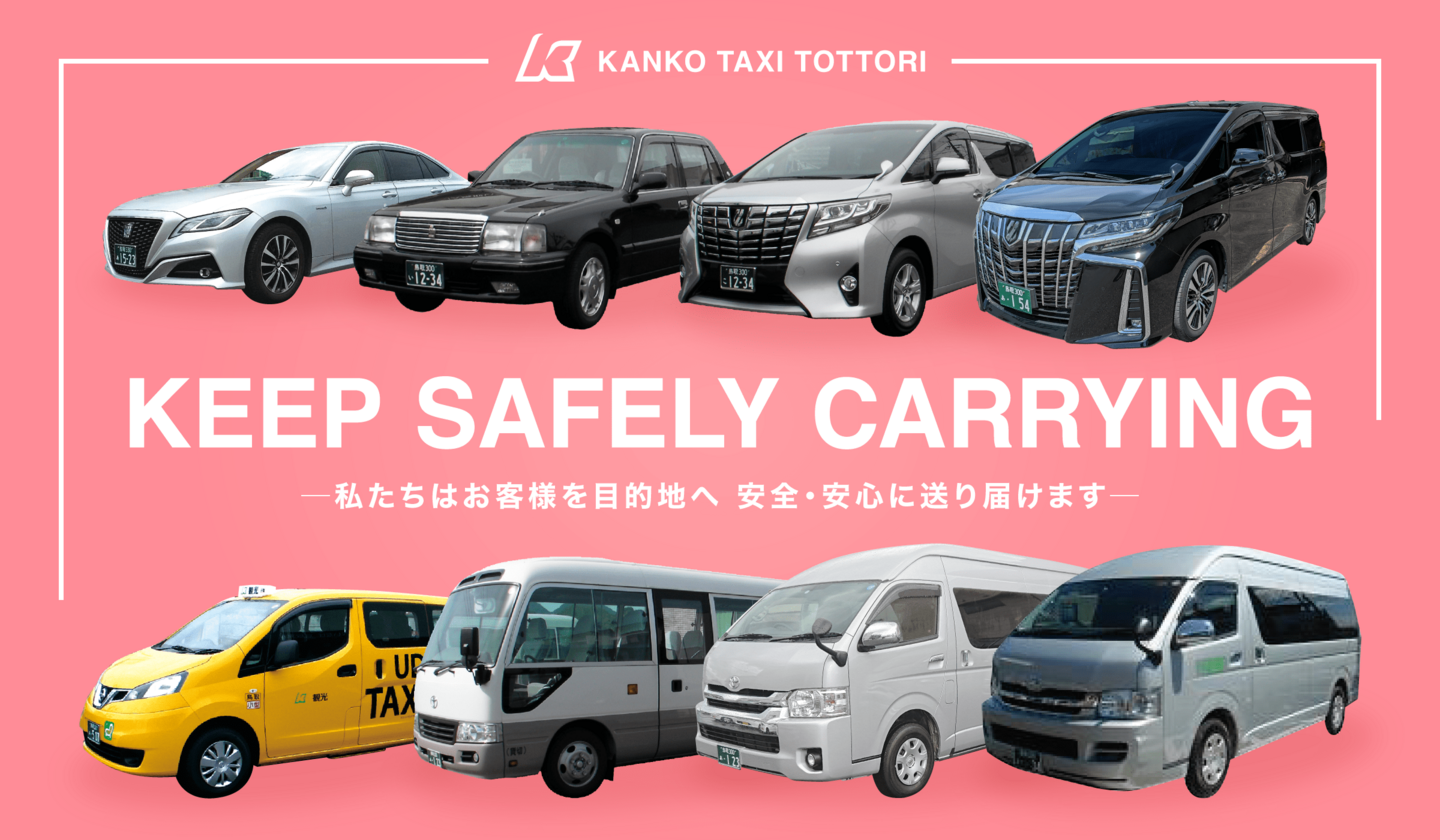 私たちはお客様を目的地へ安全・安心に送り届けます 私たちはお客様を目的地へ安全・安心に送り届けます 観光タクシーは鳥取市・岩美町を中心拠点に営業しております。小型・中型・ジャンボタクシー・マイクロバスなど 様々な大きさの車種を取り揃えており、福祉車両も所有しています。お客様のニーズに柔軟に対応し、目的地へ安全・安心に送り届けることを第一に、日々努めております。 ご予約はお電話ください ご予約はお電話ください タクシー予約 福祉タクシー予約